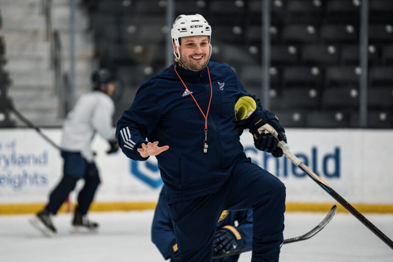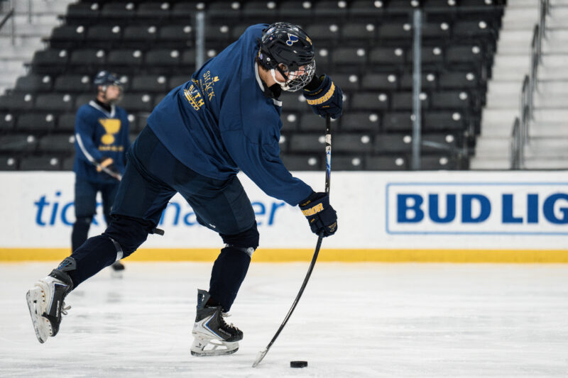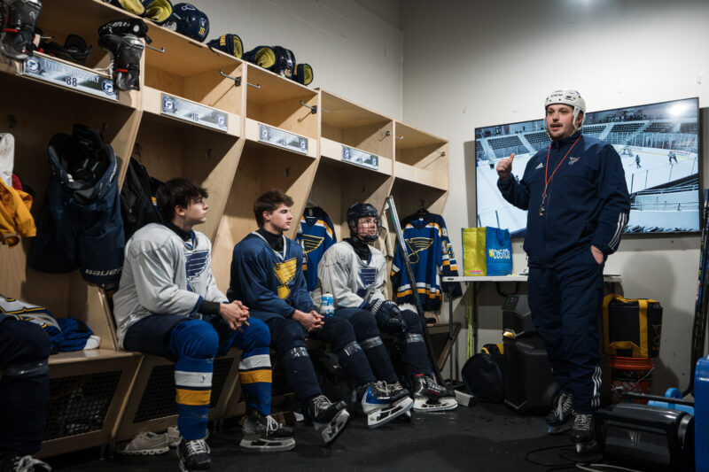 Everything about the AAA Blues is modeled after what the pros do — which adds even more meaning to the old adage: if you see it, you can be it. When the Blues are home, the players practice on the same ice as the NHL club. They eat in the same cafeteria and watch film in the same rooms. Development starts the second players walk into the locker room, down to the way their lockers are organized and structured to mimic an NHL setup.