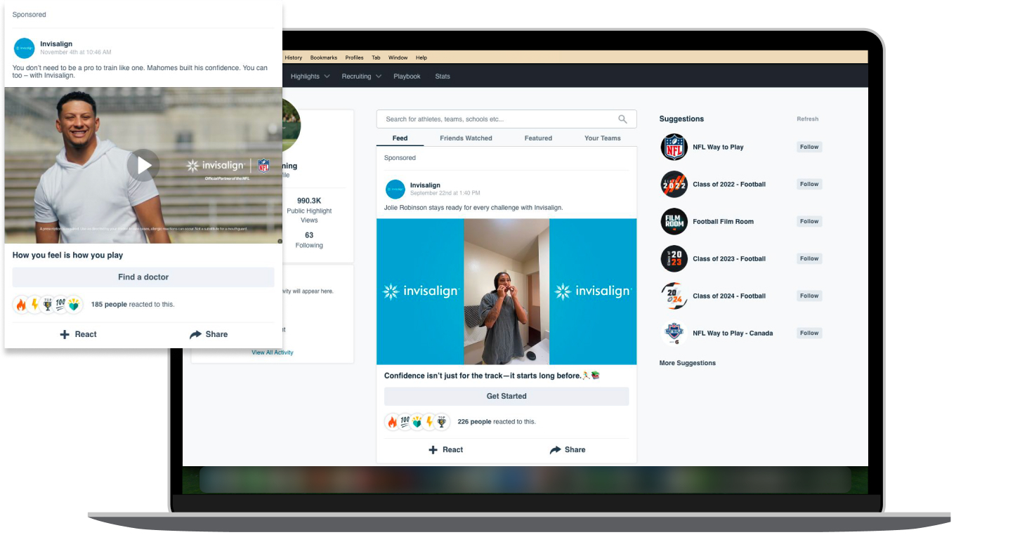 Athlete Influence: With 5 million high school athletes on Hudl, we partnered with Opendorse and identified genuine collegiate Invisalign users who could share relatable stories directly with local audiences.