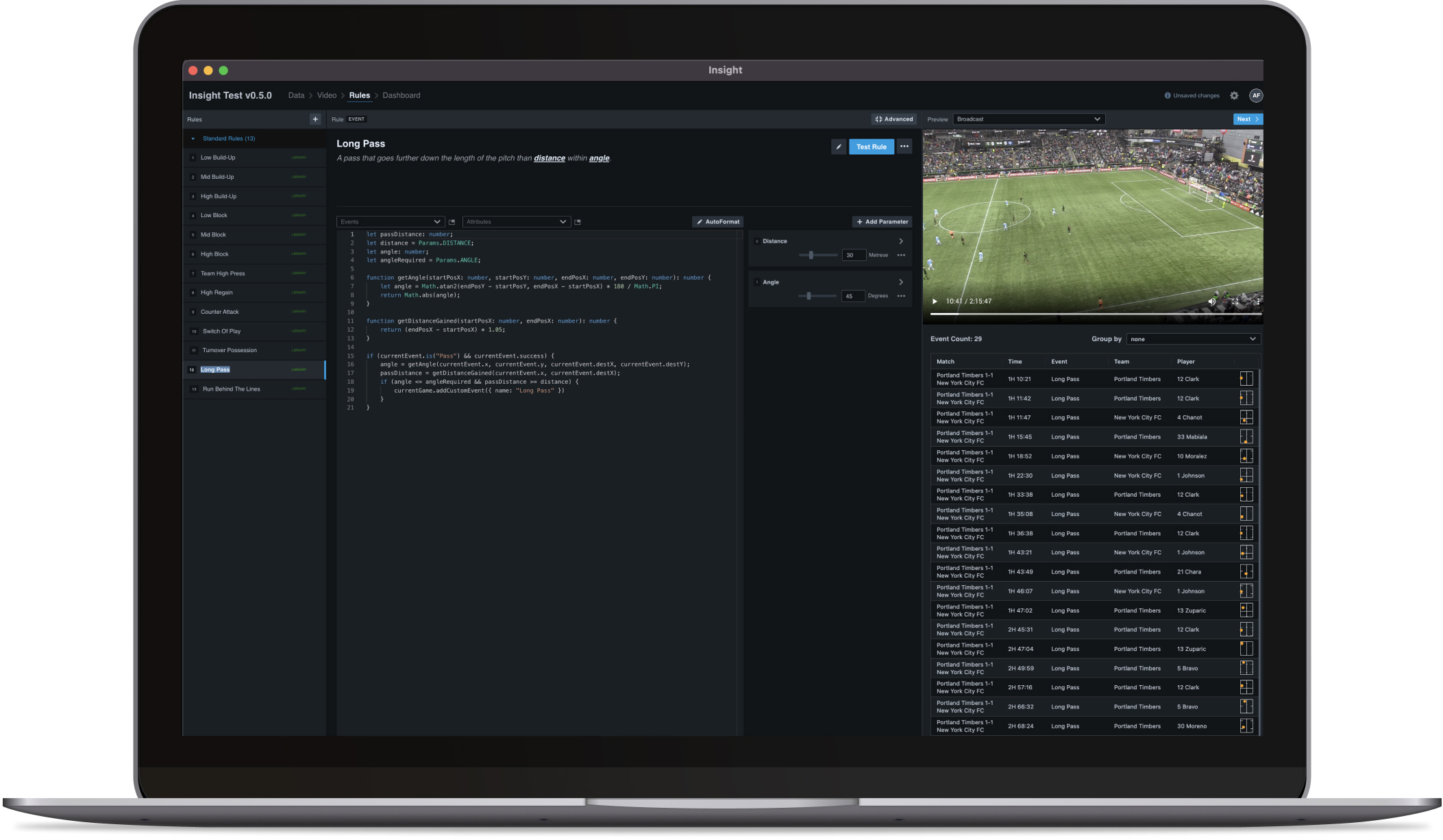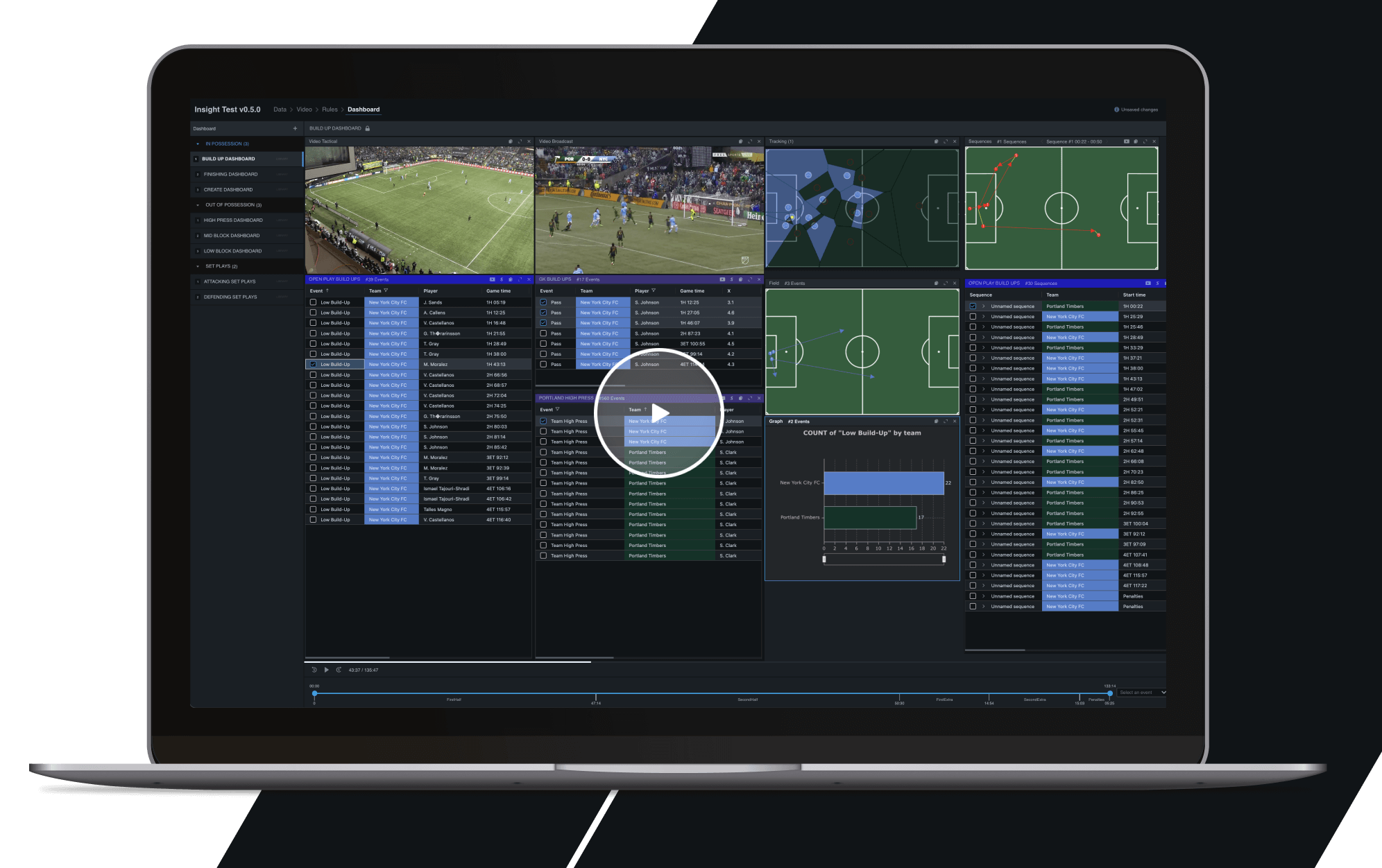 Insight supports the key high-performance workflows of Pre-match, Live, Post-Match Analysis, plus Scouting and Recruitment across single or multiple games without the need for manual coding.