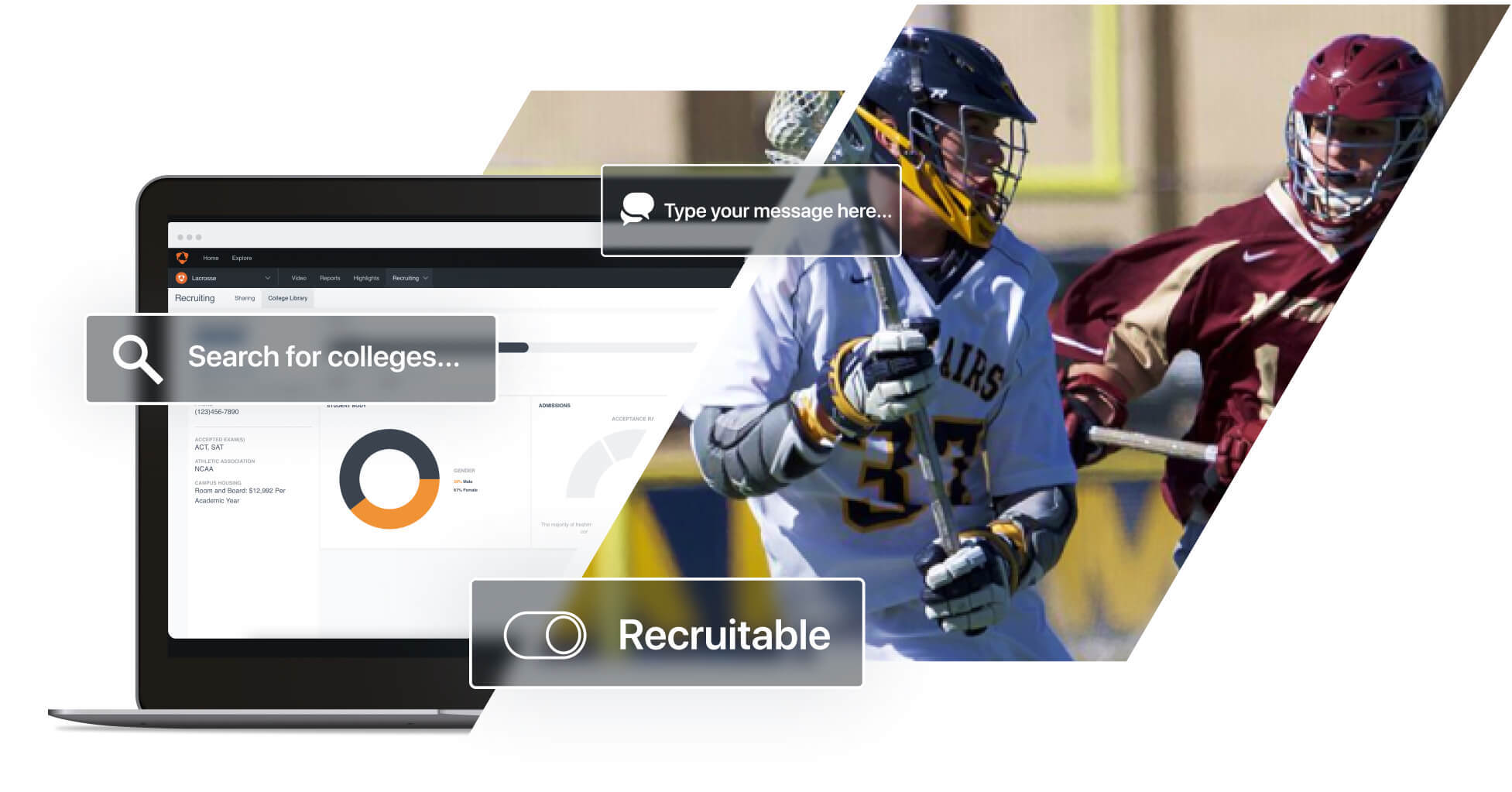 Let athletes manage their own recruiting journey by contacting coaches directly through Hudl to easily share highlights, full game videos, academic information and athletic stats.