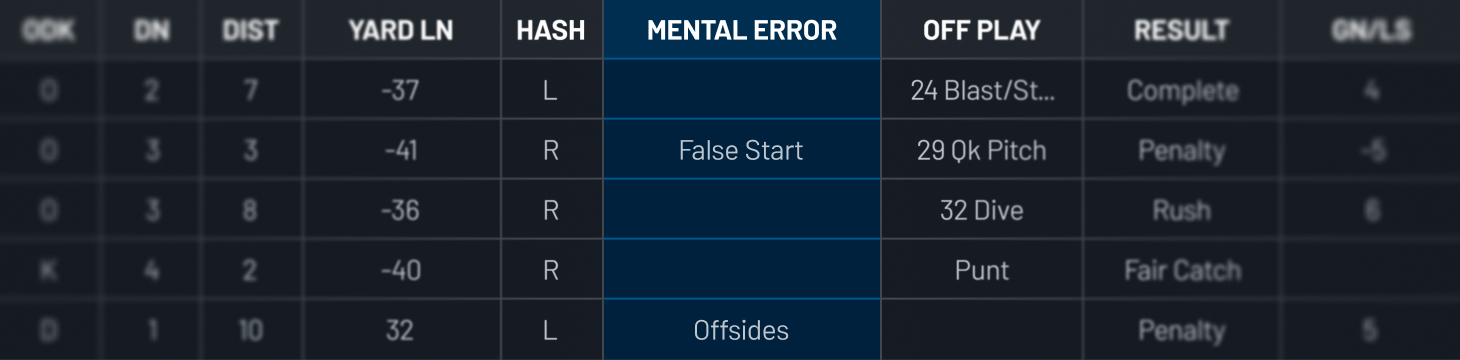Some teams tag mental errors separately from technique errors in Hudl to identify patterns. If the same formation keeps hurting you, that’s not bad luck. That’s something you need to correct immediately.