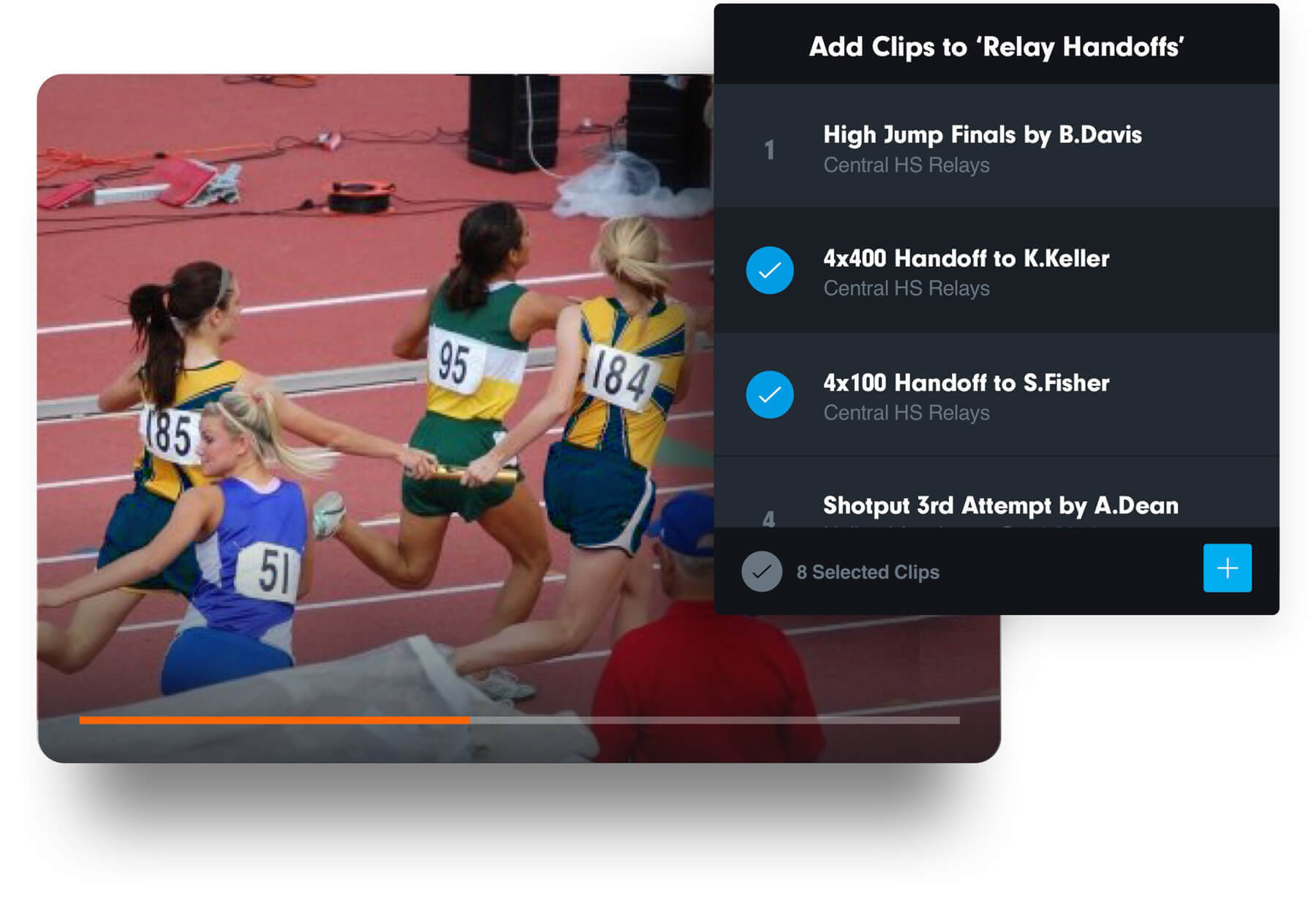 Create custom playlists to quickly jump to the exact events you want to study. Pull together clips of starts, jumps or handoffs to review and share with your team.